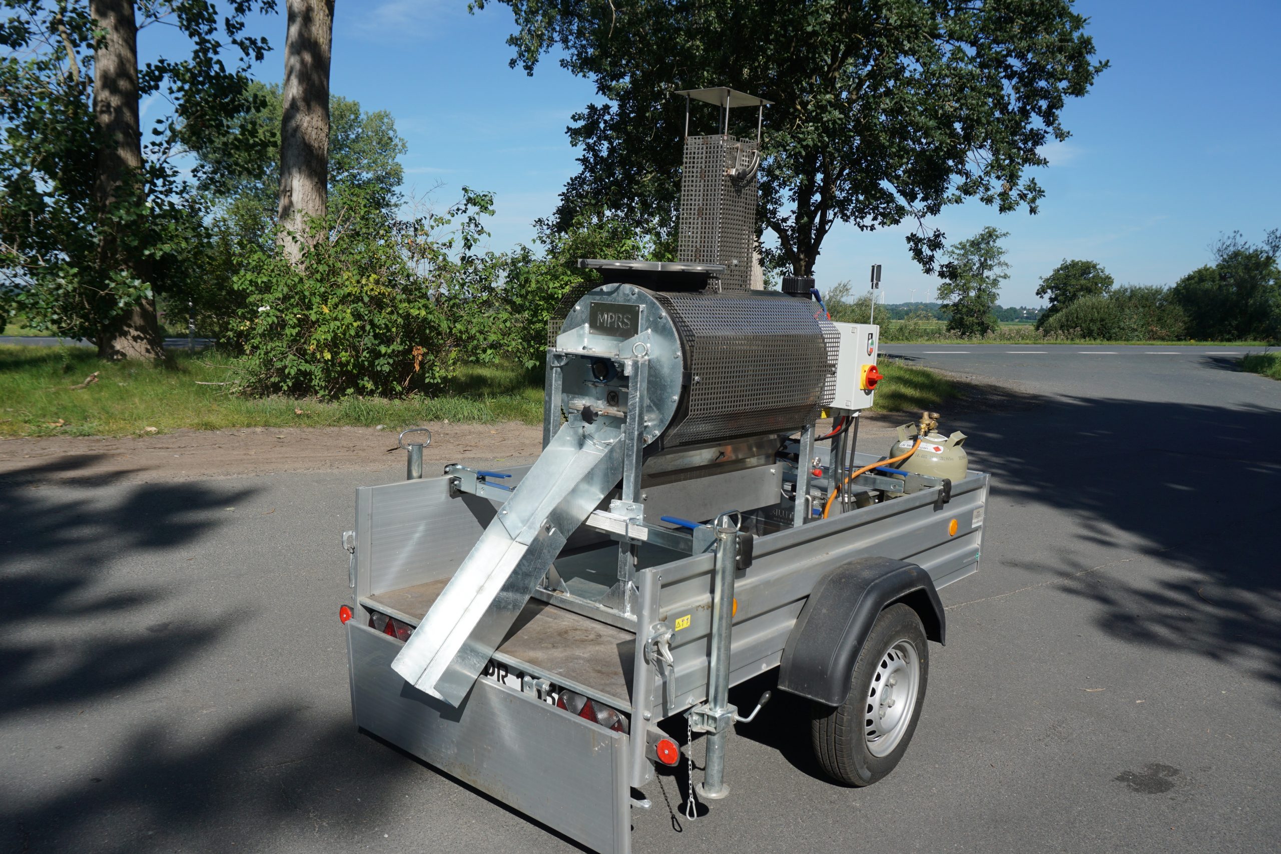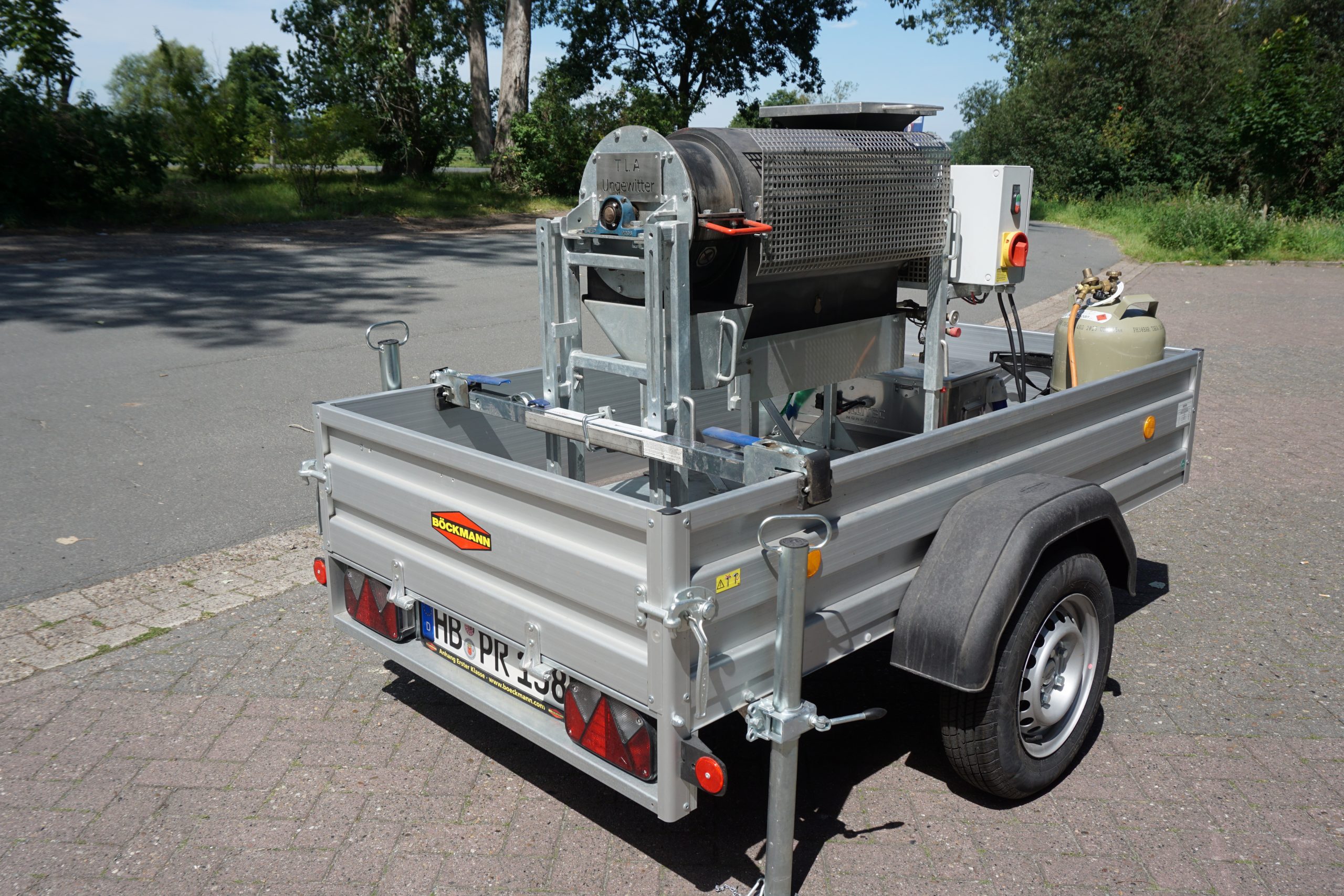 The different mini batch plant models for the preparation of Pave Repair are characterised by a comparable structural design. Within the mixer the ready to use asphalt product can be heated up to the needed paving temperatures (WMG: 140 – 180 °C and HMG: 180 – 230 °C) just at the point of construction. Pave Repair is filled into the heating drum by using the feed hopper on top of the device. Within the drum a horizontal mounted screw conveyor is mixing the material homogenously. The screw conveyor is also needed to discharge the material after heating. During the preparation process multiple but not permanent mixing is sufficient.